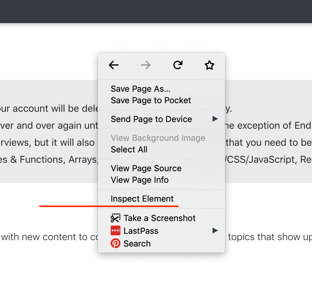 Inspect Element or Inspect (Firefox and Chrome).Console tab:After that, you can start typing code! For now, type console.log("hello").